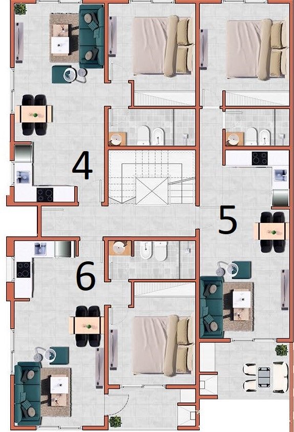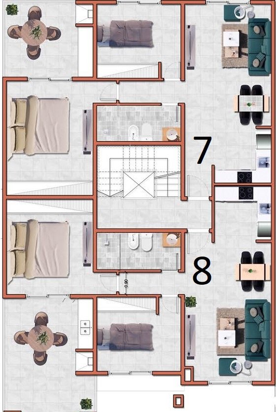 Sistema constructivo por medio de de vigas de fundación, columnas y vigas perimetrales Losa de vigueta pretensada y carga de hormigón H21. Mampostería de ladrillos huecos paredes interiores con revestimiento plástico de primera calidad y fina terminación exteriores con aislamiento hidrófugo y revestimiento plástico de alta resistencia.